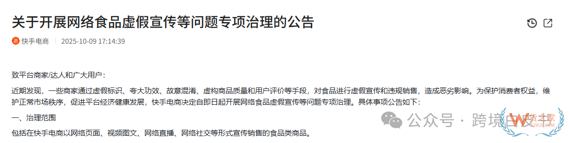 已有多个电商平台已经发布关于开展网络食品虚假宣传等问题专项治理的公告: